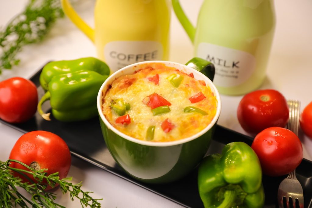The best part is that you can make eggs in under two minutes. Whisk in a mug, microwave, stir, done. Add a little chopped spinach or bell pepper and some freshly cracked black pepper for flavour.