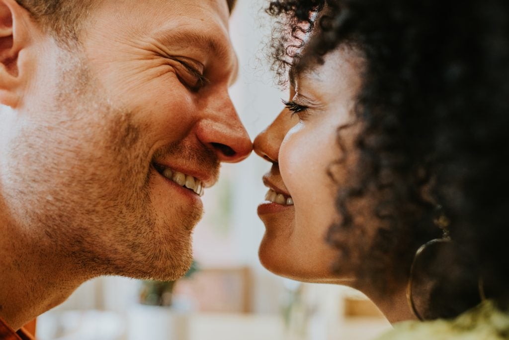 Not every kiss needs to scream “bedroom now.” Sometimes you just want a moment of tenderness and silliness. Butterfly kisses with your eyelashes, Eskimo kisses with your noses—these aren’t exactly hot stuff, but they will make you feel close and comfortable and a little silly. Is that not part of real intimacy too?