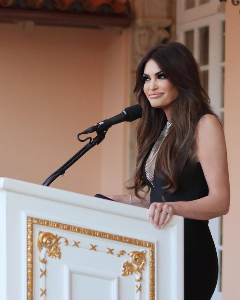 At a fundraiser for Republican Congress candidate Abraham “Abe” Hamadeh at Mar-a-Lago, Kimberly Guilfoyle’s fashion choice was once again a topic of conversation. She donned a knee-length black pencil dress featuring a dramatic plunging neckline and a thigh-high slit, accentuated with sheer, sparkly mesh. Despite being eye-catching, many criticized the outfit for being too revealing for a political fundraiser. Even among her usual supporters, the dress drew backlash, with many fans expressing that it was not suitable for the formal event and urging her to opt for more appropriate attire in the future.