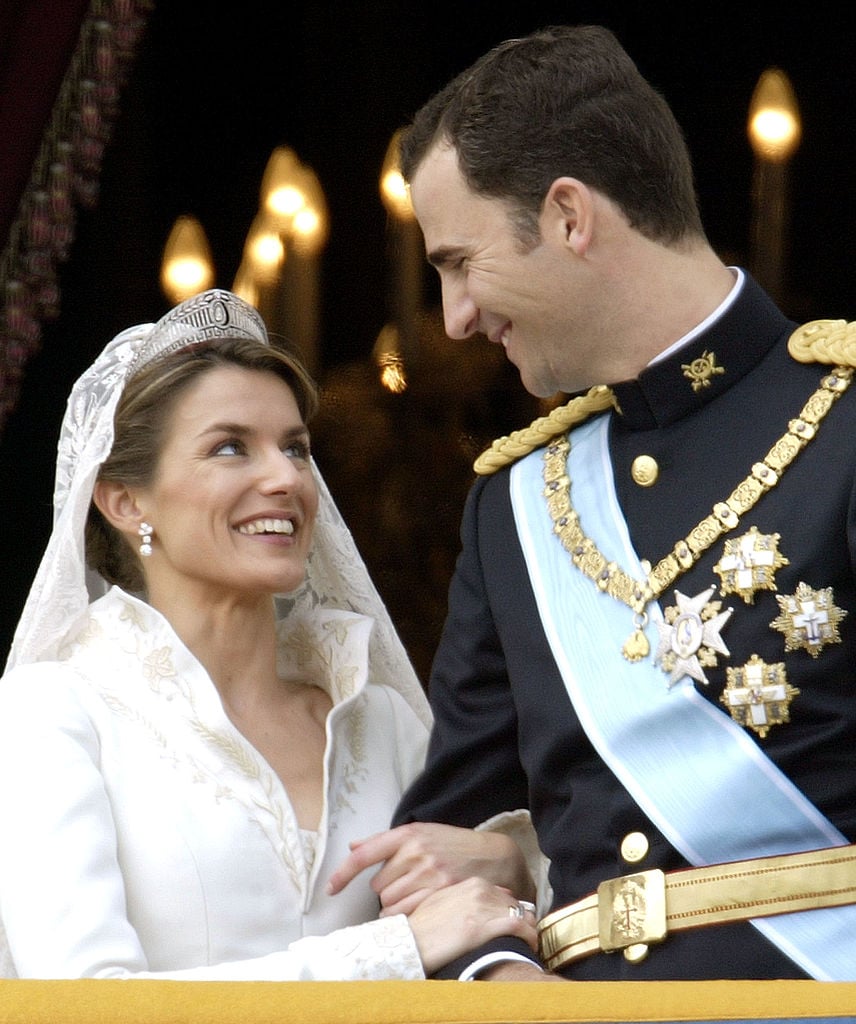 When it came time for her royal wedding in 2004, Letizia chose a breathtaking gown by Spanish designer Manuel Pertegaz. The dress featured a dramatic plunging V-neck, intricate silver and gold embroidery, and a 15-foot train. The elegant yet subtle design incorporated symbols of the royal House of Bourbon and the city of Madrid, making it a perfect blend of tradition and personal touch.