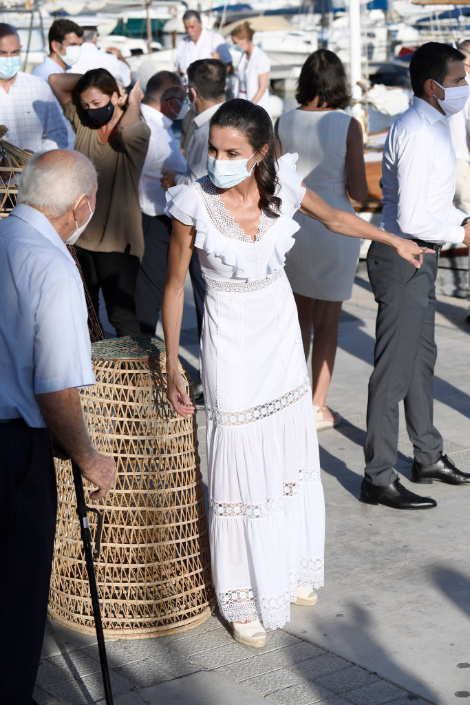Navigating the fashion challenges of 2020, Letizia impressed with a frilly white maxi dress during a visit to Ibiza. Paired with a woven bag, platform wedges, and a matching mask, she effortlessly blended style with practicality. Her ability to remain fashionable even during the pandemic highlighted her adaptability and keen fashion sense.