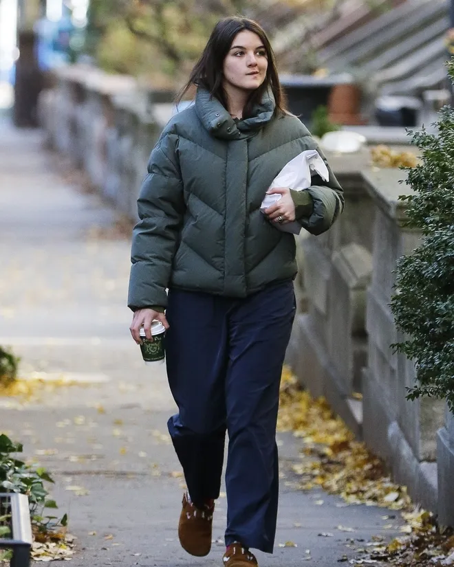 Just like her mom turned heads for her fashion sense back in the day, when Suri gained more independence in college, she started coming into her own style. She started looking like a grown-up and underwent a makeover, perhaps due to the influence of college friends or her new sense of independence in Pittsburgh, away from the celebrity drama that followed her in New York. Hello! Published images of her in December 2024 showed her with a dramatic haircut, now closer to shoulder length than her previously flowing hair. It was worn in a ponytail with oversized blue jeans and a green puffer jacket, which she wore when she was home on a break from school.
