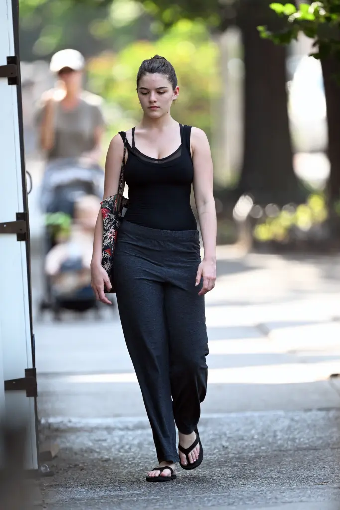 Months later, her style change was even more evident, and in June 2025, we saw a total transformation. Again, in NYC, she was seen with a form-fitting black tank top, a matching sports bra, and black thonged sandals for a cohesive look. Fan accessories went wild for the look, and people complimented her casual-chic sartorial choices.