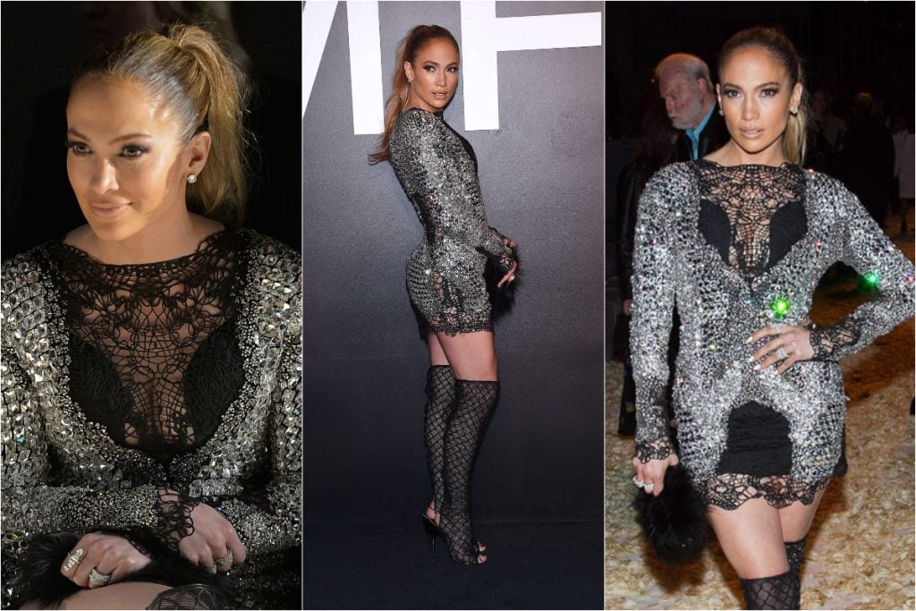 Silver and J.Lo are usually a match made in heaven. From her glittery 2010 Grammy minidress to her 2024 Schiaparelli Met Gala look, the color complements her radiant skin tone. But in February 2015, J.Lo attended a Tom Ford fashion show in a short silver-and-black dress that, frankly, looked more arts-and-crafts than avant-garde.