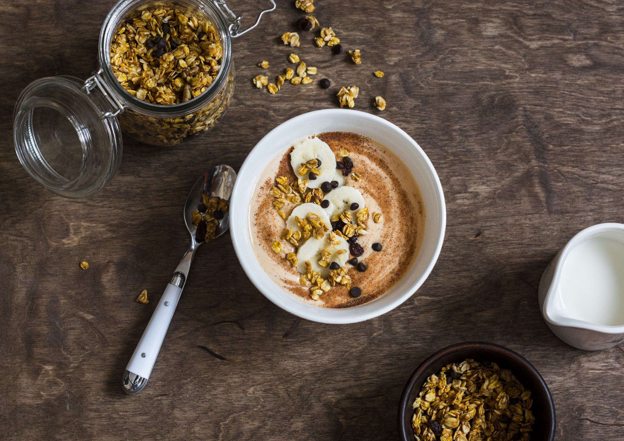 A cold smoothie isn’t exactly desirable when it’s getting cold outside. Stay cozy by mixing ingredients like oat or almond milk with oat, cocoa powder, and flavored protein powders. Either microwave ingredients or blend till it reaches the desired temperature.