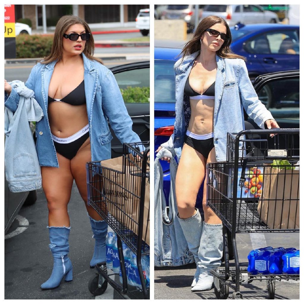 3.Gabriella Athena Halikas recreated a grocery store look by Julia Fox. Gabriella said that while this was definitely the most scandalous outfit she’s ever worn to a grocery store she felt liberated. She says that she’s tired of this idea that only skinny girls are allowed to wear more revealing outfits and as soon as a curvy woman does it’s immediately deemed to be «too revealing» or «inappropriate». It even goes back to her middle and high school years when she used to wear the exact same outfit as her skinnier friends, but only she would get dress coded because her pencil skirt just “wasn’t appropriate” (since she was just thicker) — and her tank top was “too revealing” just cause she had bigger boobs.