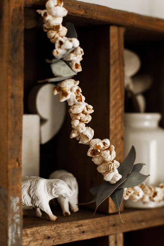 Just like dried fruit, popcorn can be strung with a needle and thread for a fast, lazy decoration. It looks great wrapped around a Christmas tree. Don’t be afraid to use cheddar popcorn, kettle corn or other flavor varieties to get some color in your garlands. Another bonus about this hanging decor is that it’s edible!