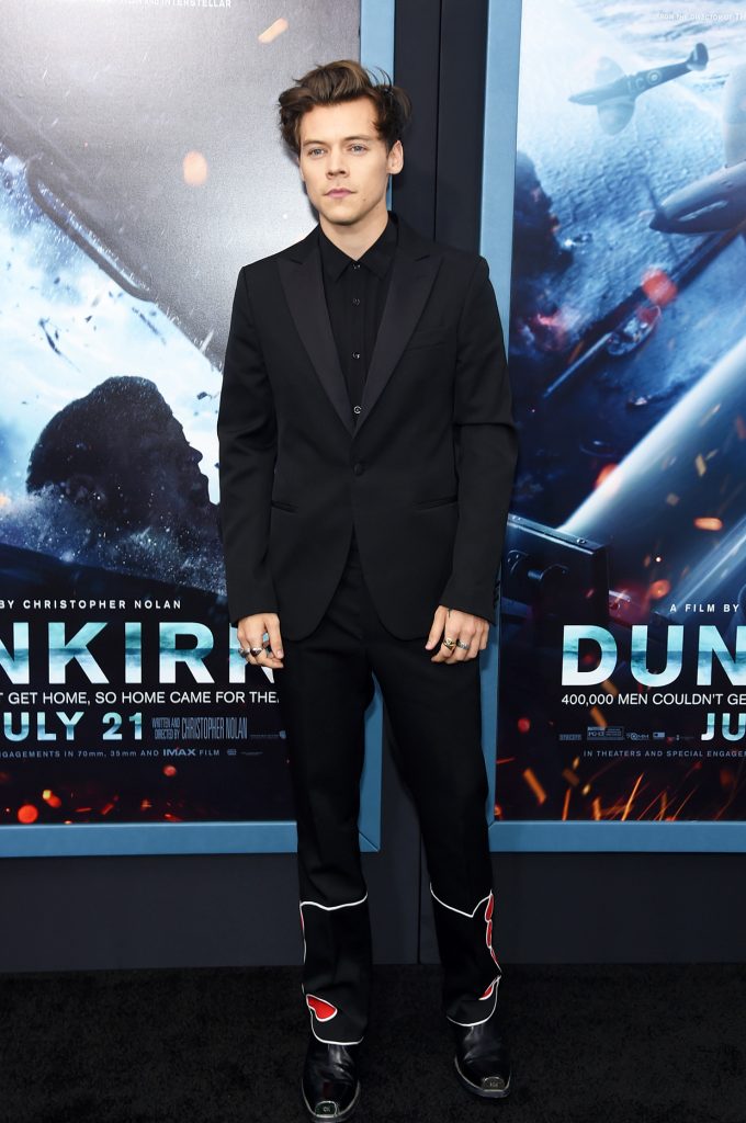 3. Styles keeps cool in Calvin Klein’s label 205W39NYC at the Dunkirk premiere, where he shows a surprisingly muted and masculine side of himself. The hair is clean and coiffed, and the suit seems to be an impeccable, all-black look…until you get to below the knees, that is. Western ankle boots The look is sophisticated with a hint of playfulness – a mood that Harry consistently impresses us with.