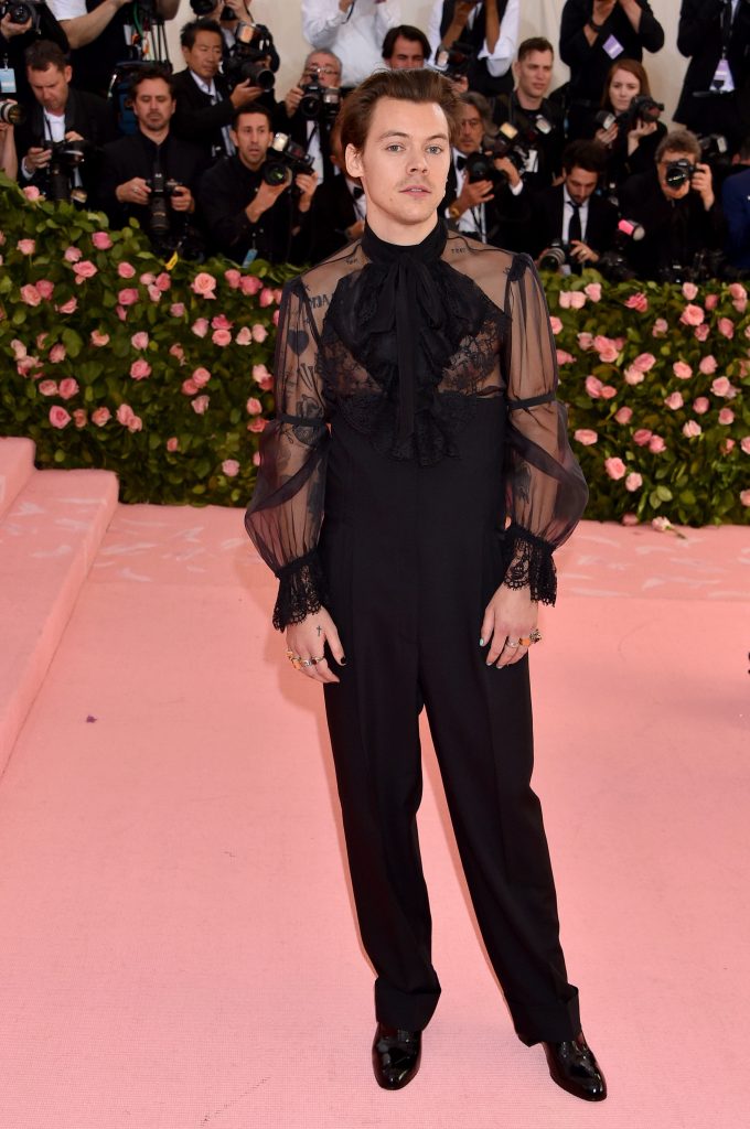 7. It’s rare to see a guy rock a sheer look (especially a bodysuit) as flamboyant as this on the red carpet. Style is an emblem of genres fluidity here and fashion inspo for all the boys, girls, and everyone in between. The theme was camp, and Styles tackles it with elegance and ease in this all-Gucci-Everything look. Oh, and by the way, this was his first Met Gala ever.