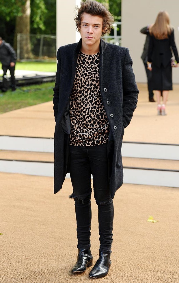 8. Ugh, even when he’s dressing casual, he looks better than us on the days we try the hardest. This effortless look is serving us smouldering New Yorker, but he holds onto his androgyny with a classic leopard print sweater tunic. Tight black skinnies and a long black overcoat made this the ultimate look for fashion week.