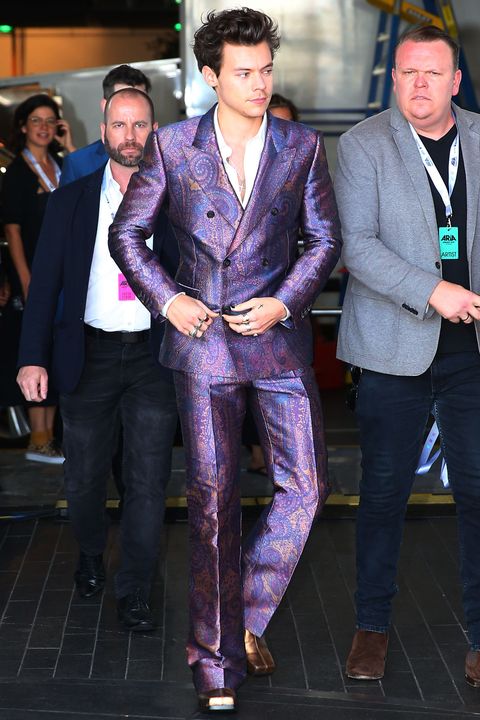 9. At the 2017 Aria Awards in Sydney, Styles wore a custom-made Alexander McQueen suit. The suit was illuminating in more ways than one – fitting him to a T and stealing the spotlight in all its metallic, purple and paisley drama. The look is totally flashy but looks like something out o the pages of GQ, especially when worn by Harry who can pull off literally everything, as this outfit proves.