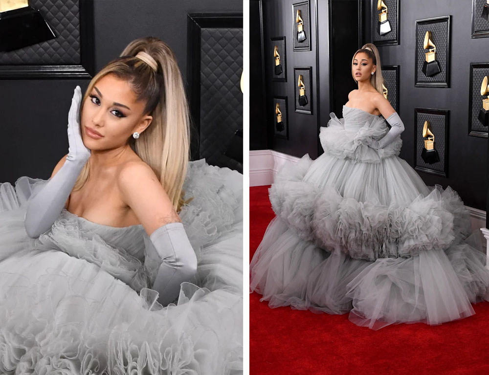 Her second dress was just as dreamy and beautiful, but more low-key compared to the floating tulle dress she wore at the beginning of the event. Ariana Grande later changed into a Schiaparelli Haute Couture dress with a ballgown bow skirt.