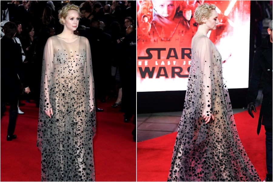 The sheer dress with the black dotted pattern looked especially ethereal yet very spacey at the premiere of Star Wars.