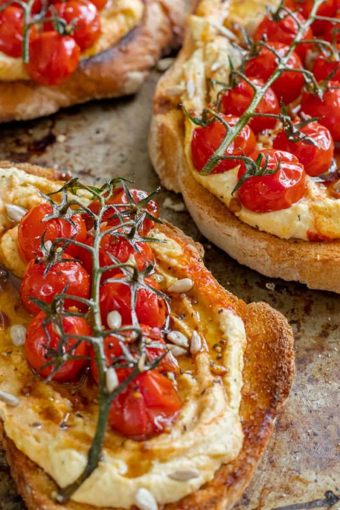 2. Balsamic Roasted Tomatoes & Hummus Toast
