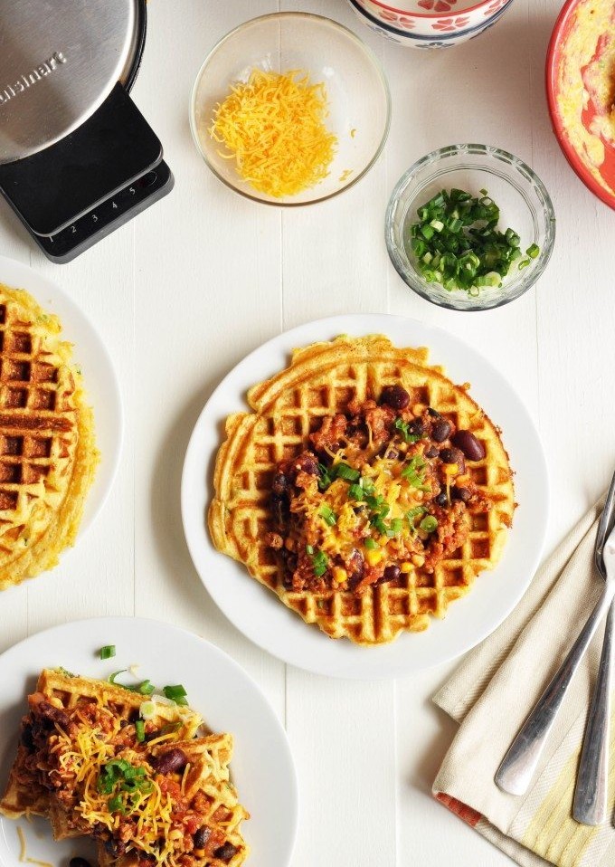 Another reason to invest in that waffle iron. Savory waffles are totally a thing, and they are 10/10 when made out of cornbread and topped with a soul-warming chili. With a spicy kick and a garnish of green onions, this brunch dish could be served in a restaurant, and best of all, it takes less than half an hour total to cook.
