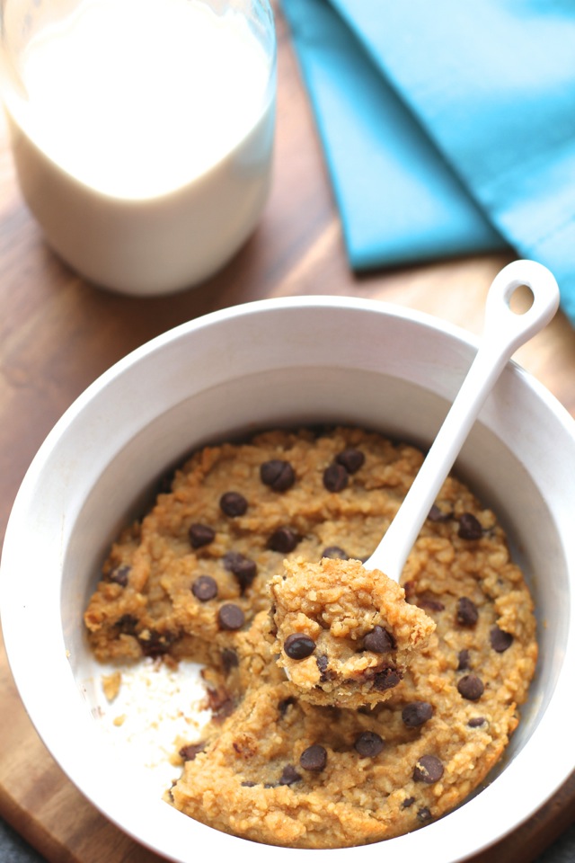 Admittedly, oatmeal is not a star of mouthwatering breakfast ideas. But when you add chocolate chips, vanilla and apple sauce, it basically tastes like oatmeal chocolate cookie dough, and we’re not mad about that. You can sub the applesauce for yogurt or mashed bananas, and baking it provides a tasty crust.