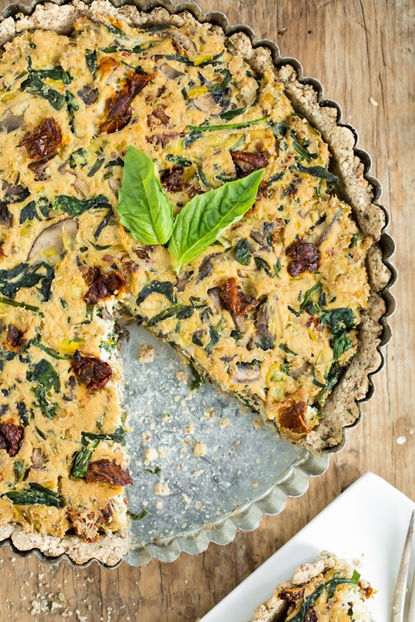 8. Sun-dried Tomato, Mushroom, and Spinach Tofu Quiche