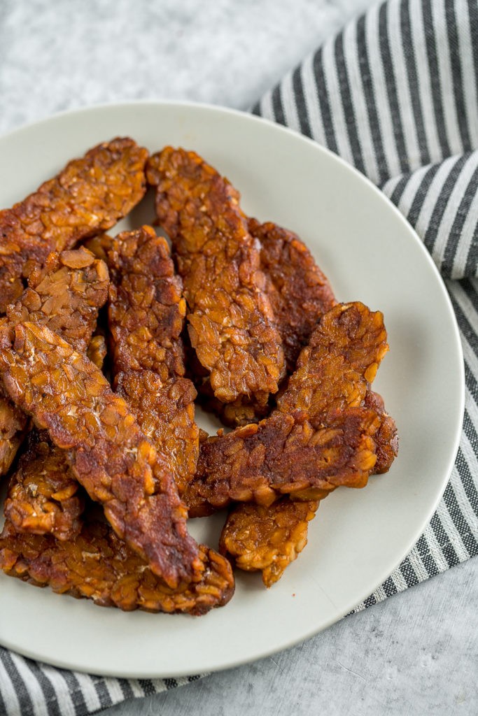 Bacon is the holy grail of brunch sides that vegans are always missing out on. It’s not fair. And let’s be honest – store-bought tempeh bacon as it is doesn’t always cut it. This tempeh bacon has amazing ingredients to assist it, and a level of crispiness that similar recipes don’t hold up to. This recipe takes that store-bought tempeh and adds liquid smoke, maple syrup, herbs and soy sauce to make for a magical concoction.