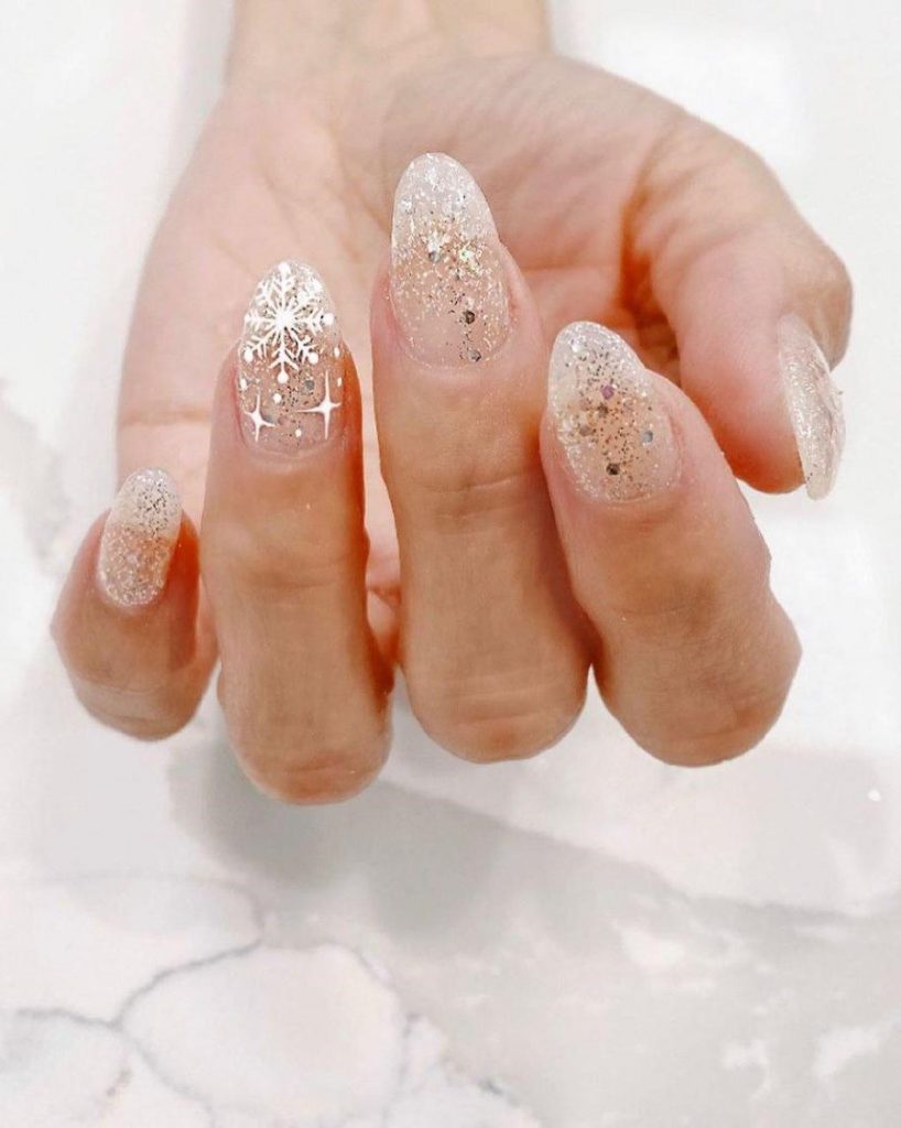 10. Glitter and snowflakes on a clear or nude base. It is magical and you know it. Who wouldn’t want to rock nails like that?