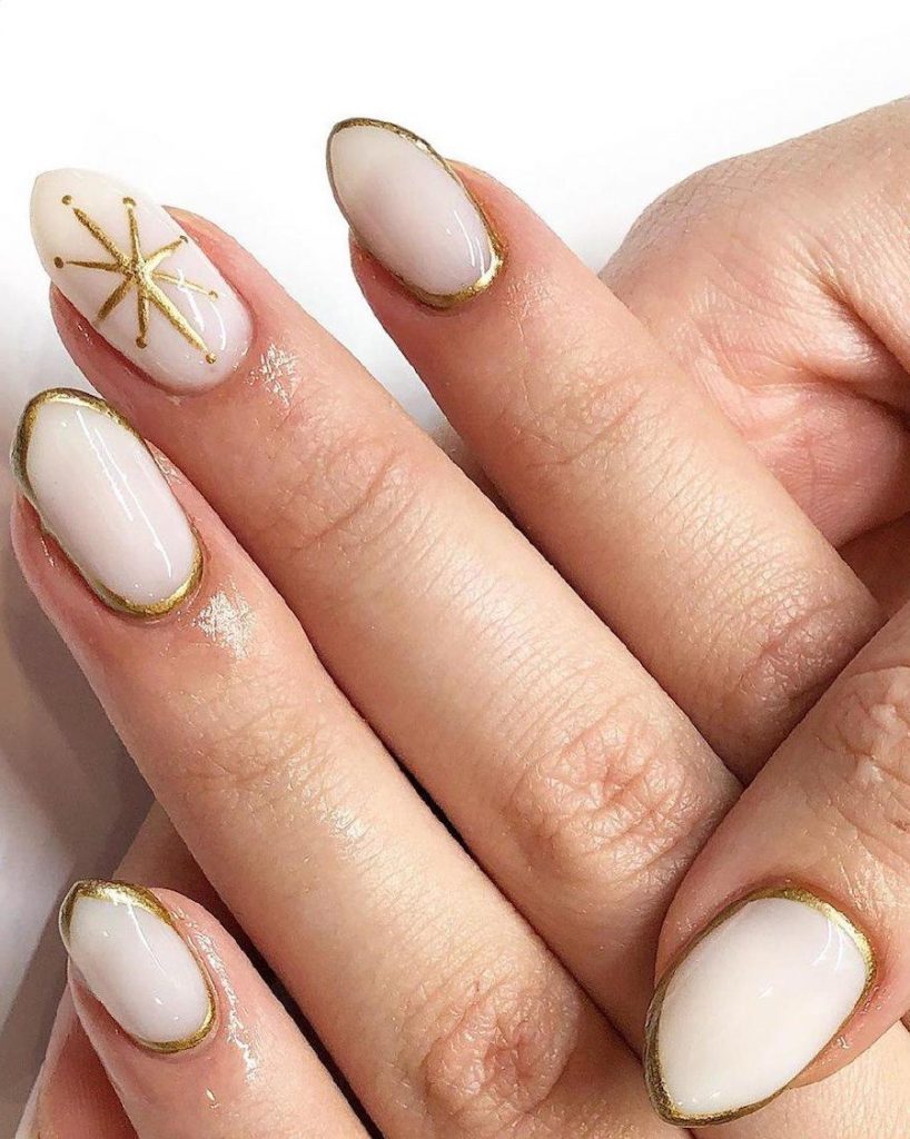3. Light colored nude nails with a little sliver of gold are the most winter-appropriate manicure idea we’ve seen. The star/snowflake on one nail is a nice accent too.