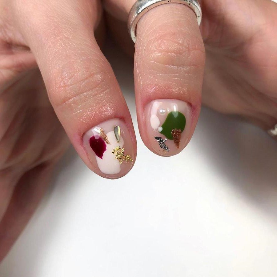 5. This nail design idea is a perfect example of how just using a couple of brushstrokes of all the Christmas and winter colors can transform your manicure. You don’t even have to know how to draw, just put a couple of blobs of winter colors on your nude nails, some gold or silver foil and suddenly you’re artsy and fancy.