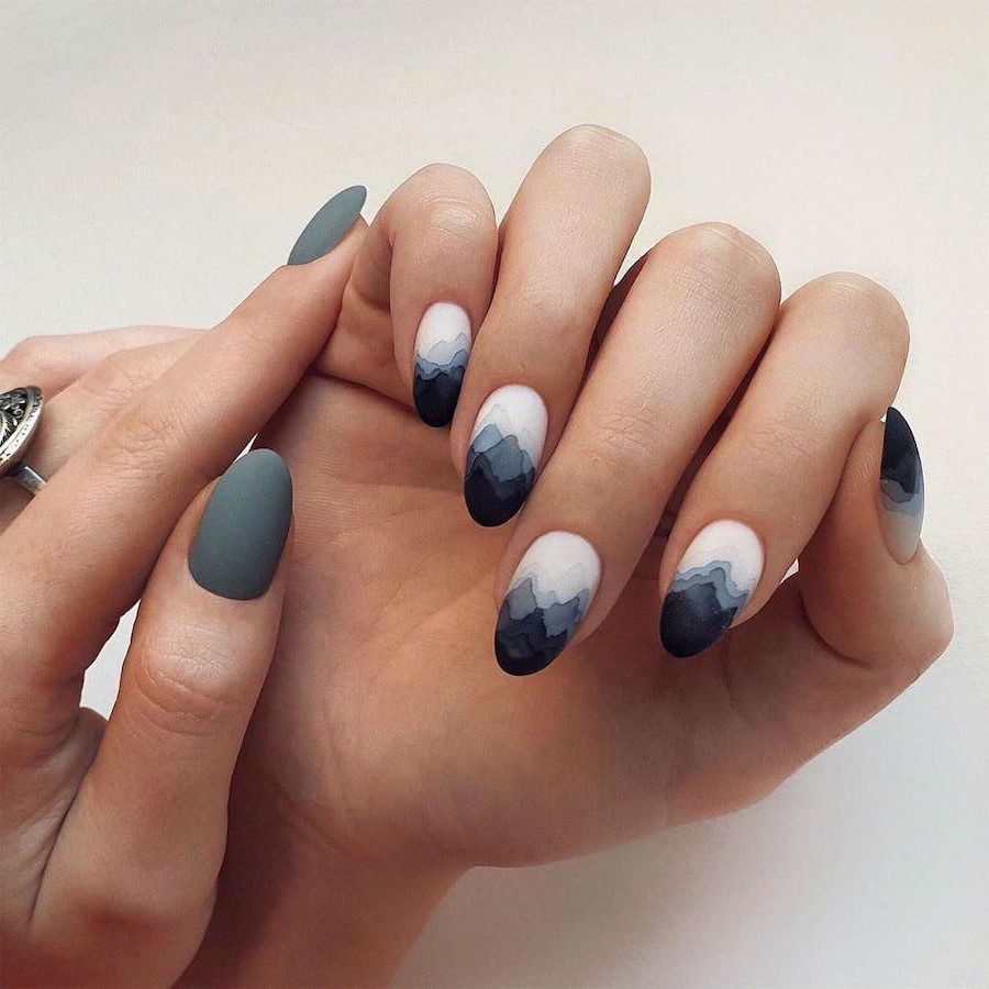 6. Blues, whites and greys always look good together and the geometric design that looks like misty snowy mountains is a great idea for winter nails.
