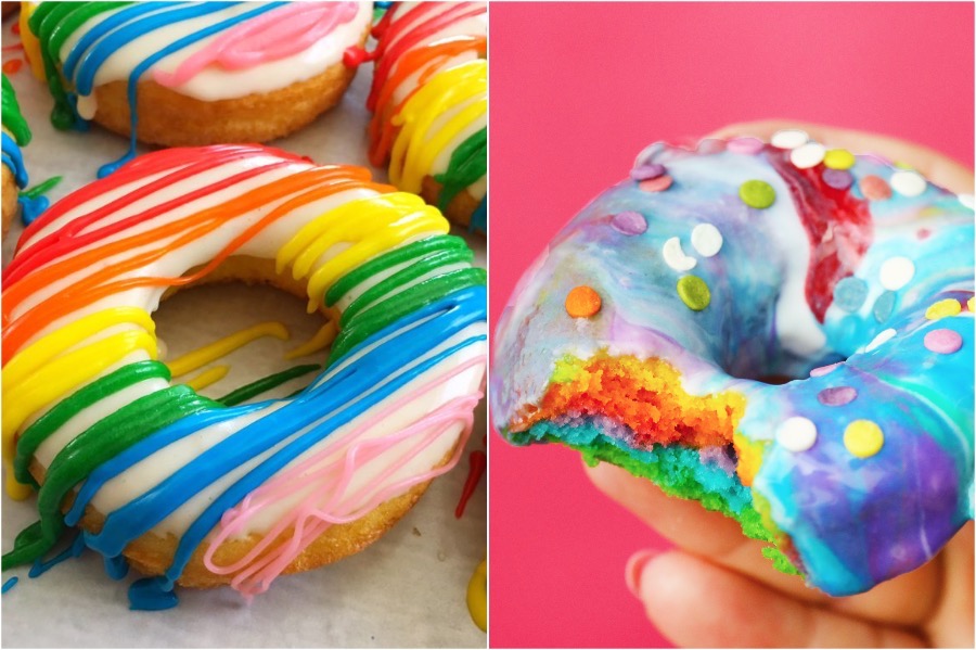 Everything tastes better when it’s rainbow colored, you can’t argue with that. But whether you prefer rainbow filling, rainbow glaze, rainbow sprinkles or just rainbow dough – all of those options are available in donut form.