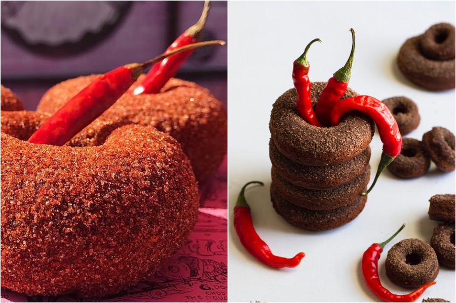 If it’s heat you’re after the Ring of Fire donuts are definitely something you should try. These are chocolate donuts with cinnamon sprinkled on top. But the secret ingredient is cayenne pepper, that contrasts the richness of the chocolate and packs some serious heat. And yet they are sold with dried chilli pepper on top.