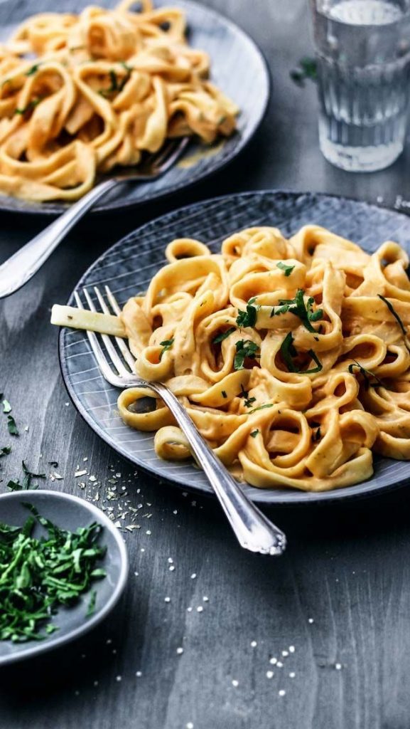 This is like the sweet potato version of pasta Alfredo. You’d never think that a sweet potato based sauce on spaghetti would be tasty, but combined with coconut milk, you get a silky smooth and buttery main dish that’s healthy as well. It’s absolutely heavenly and you can adjust the thickness of the sauce based on how much coconut milk you use. If you don’t want that nutty undertone, you can always sub for broth or another kind of milk.