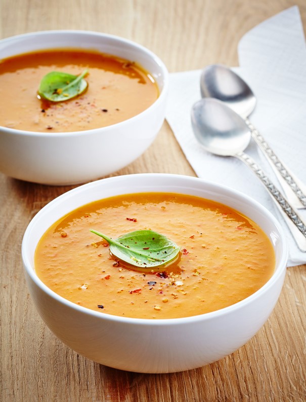 Some days, nothing hits the spot except a big bowl of soup. Sweet potato soup is warming for the heart and soul, and the unique addition of orange juice works extremely well. Serve with a dollop of yogurt and fresh cilantro or basil.