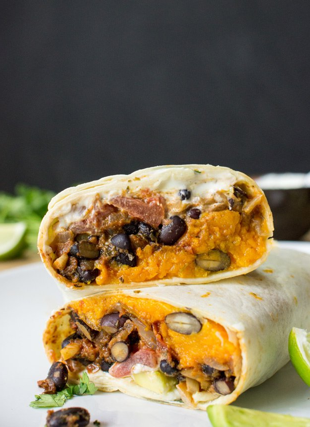When a Mexican craving hits, say no to the fast food and try this sweet potato burritos. You can sub black beans for pinto based on preference, but thank to the creamy avocado and fiery chili, you won’t even miss dairy. That being said, if you do want to use a sour cream or cheese, consider a dairy-free option like Daiya.
