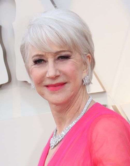Before 2015, Helen Mirren is rocking beautifully bright, grayish white hair, pairing a pixie cut with side-swept bangs. Previously, she dyed her hair a blond color, but Mirren is really glowing with this look.