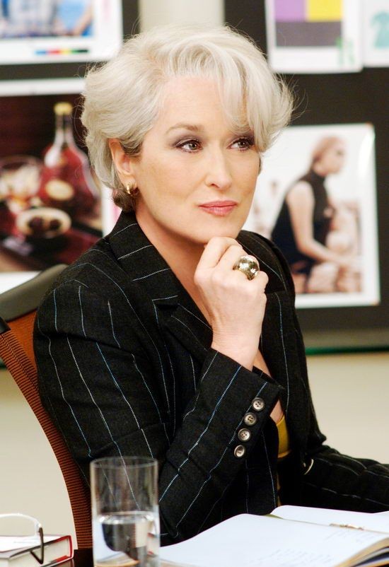 We’ve known Meryl as blond in so many movies, but as soon as she hit the big skin with that fierce gray and white look from The Devil Wears Prada, we learned that gray hair is pretty much the most fashion thing ever. Today she’s all about keeping it natural.