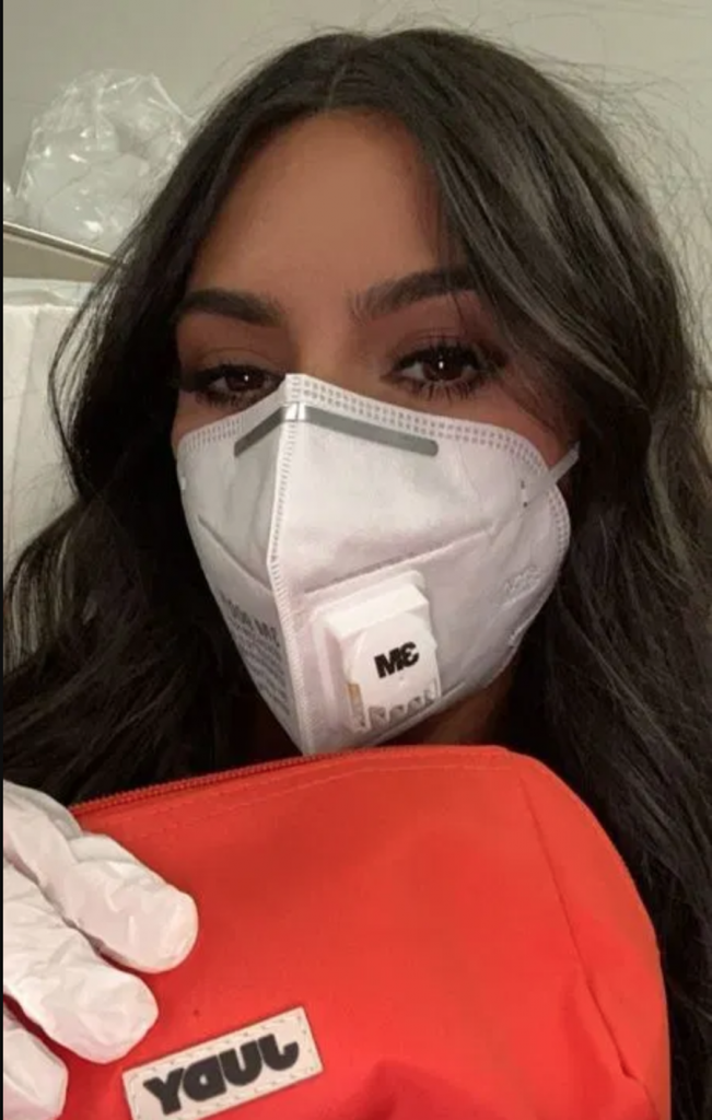 Only Kim would wear a full face of makeup and then a facemask, but hey, who said you can’t be glamorous during a pandemic?