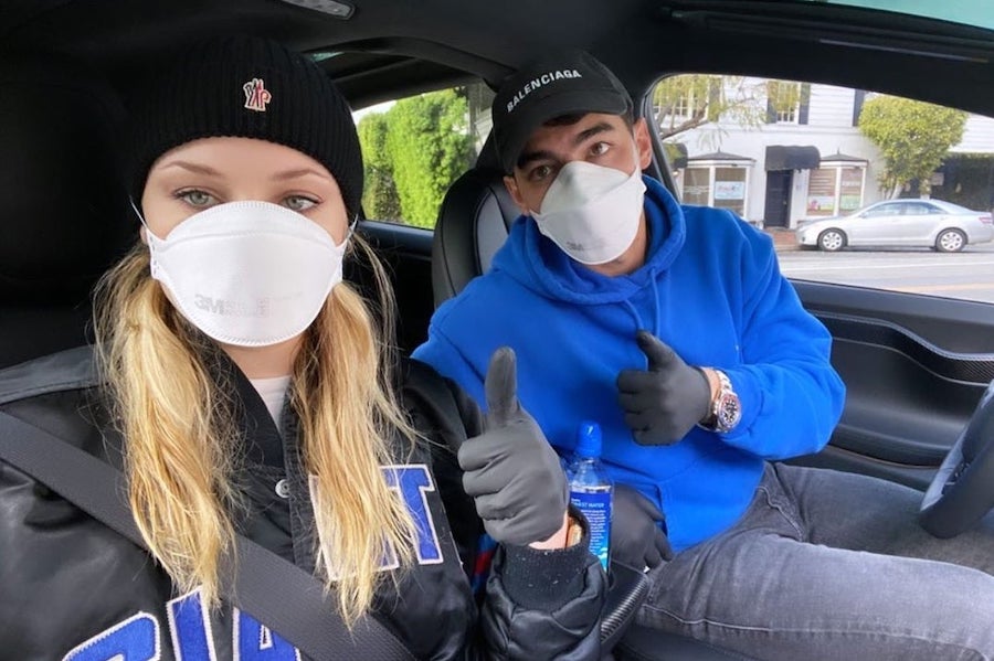 The famous couple wore surgical masks and gloves while going for a drive, we can only assume they’re going to get some food and essentials before going on lockdown at home.