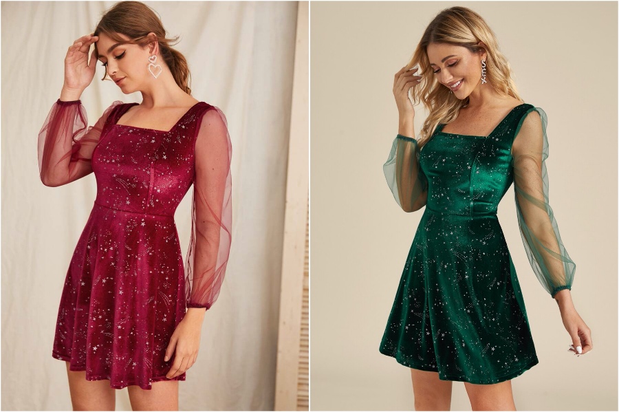 1. Let’s start easy. A velvet dress is a classic for the Christmas holidays and it works for New Year’s Eve too. Bonus points if it has pretty stars all over it too.