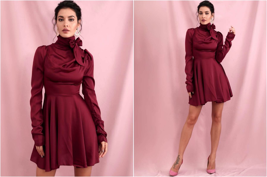 19. A classy red dress, with a bow on the neck and puffy organza sleeve, just what every fashionista wants to finish off the holiday season.