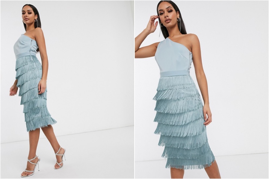 9. Now if you want to look classy AF and have a bit of a 20’s vibe going at the same time, we suggest an off one shoulder dress with some tassels on it. Very elegant and kinda flapper, right?