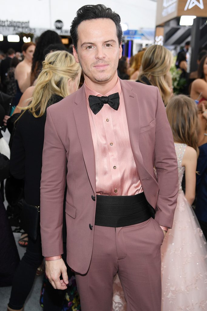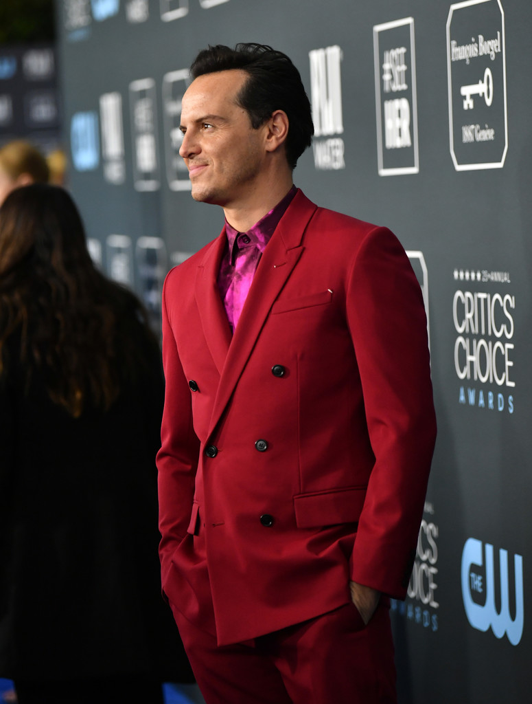 Well known BBC actor Andrew Scott has established himself as a serious actor, and a bit of a fashion icon as well. The 2020 Critics’ Choice Awards further thrust him into the fashion good graces his fans, when he attended in a swanky red suit with a hot pink silk shirt.