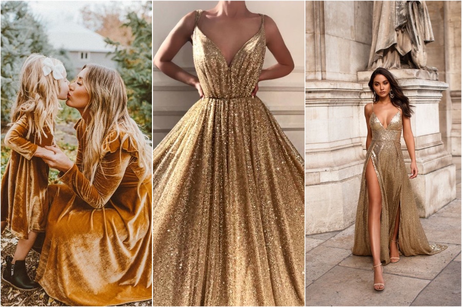 Gold can also symbolize wealth, but not only financial but also emotional. It’s a festive color that’s widely used for celebrations and it’s really easy to add a bit of gold to any outfit with accessories or a pair of gold heels.