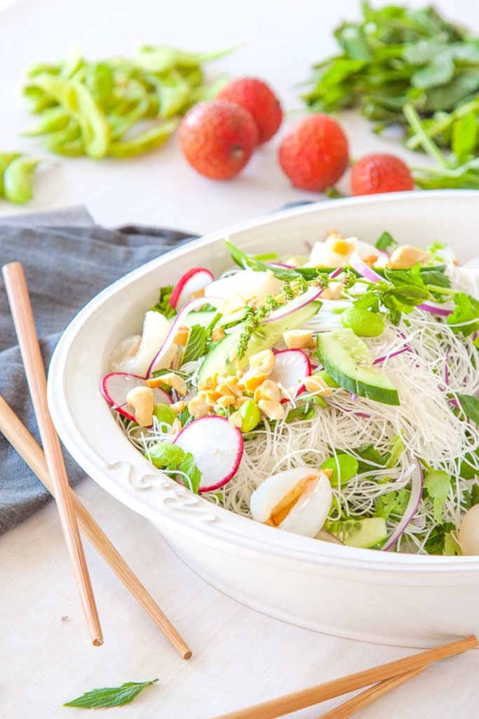 Sometimes if you want to have an exotic meal you just need some exotic fruits in it! This fresh salad tastes absolutely delicious and is perfect for hot summer days when you can’t even think about having something heavy during the day. For this salad you will need lychees, cucumbers, red chillies, limes, a bit of your favourite vinegar, and some sugar. Add cilantro or mint for extra flavour.
