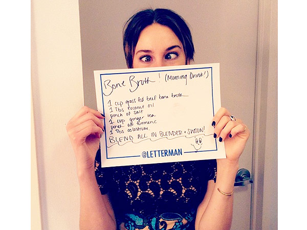 Shailene Woodley is always glowing due to her extremely holistic diet, which includes bone broth, a nutritious superfood. Bone broth can help with leaky gut and is a fantastic alternative cereal or eggs, especially if you’re not a fan of solid foods for breakfast. Swap your coffee for a steaming cup of collagen-rich bone broth and your body will thank you!