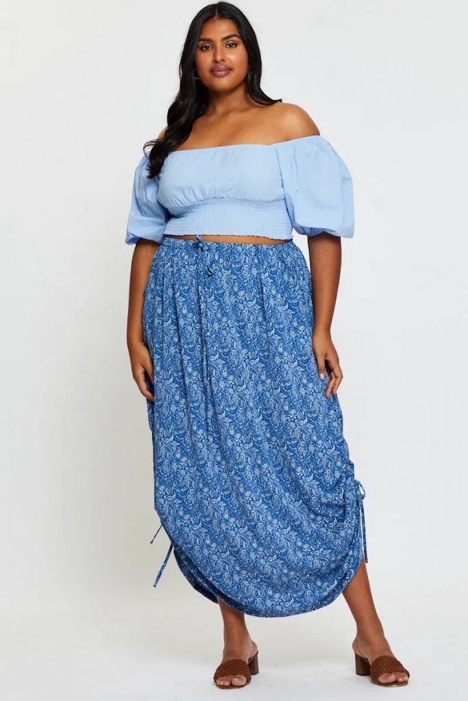 Maxi skirts are one of the most flattering items of clothing for curvy women. It’s flowy, it’s pretty, and if you get one that is adjustable at the waist and you can cinch it in or loosen it up (depending on how you feel that day) it can really be one of those items of clothing that pulls together an outfit and makes you look effortlessly stylish while feeling extremely comfortable.