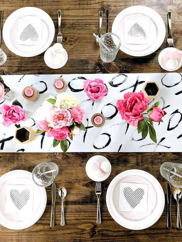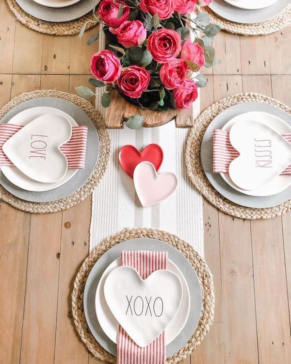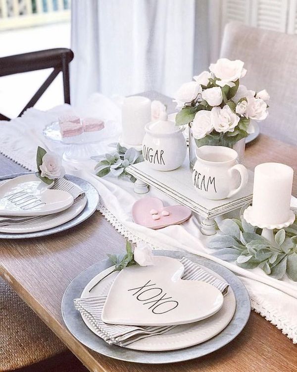 1. You don’t have to go with all red everything for Valentine’s day. Few of us actually own many red dishes and in all honesty, it can look a bit too much. A simple table runner with XO on it is really enough to set a flirty mood.
