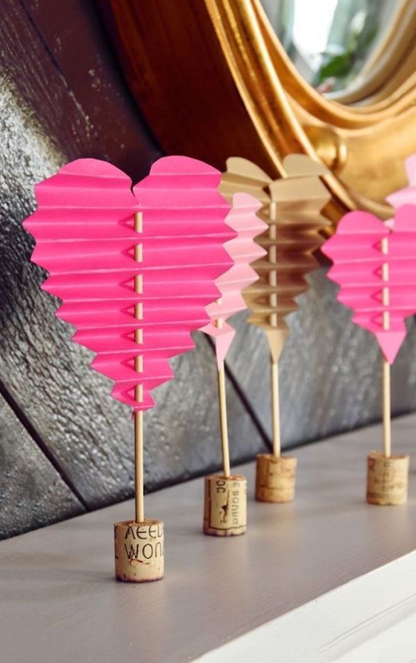 2. DIY little hearts made of paper and wine corks are a cheap and easy way to make your dinner table look more themed and intentionally decorated.