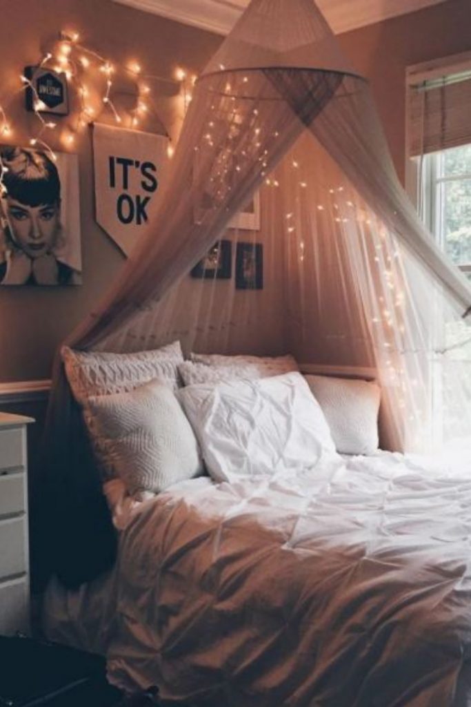 Experiment with lighting and invest in some subtle lights that will create a whole different atmosphere in your room. In the evening you want to enjoy warm lighting that will relax you after a day filled with work and various events. Invest in some candles – having some live fire in the evening is the most calming thing in the world. Another thing you can try is decorating your room with fairy lights – they will turn your bedroom into a magic sanctuary. A salt lamp will not only create calm lighting, but it will also clean up your air.