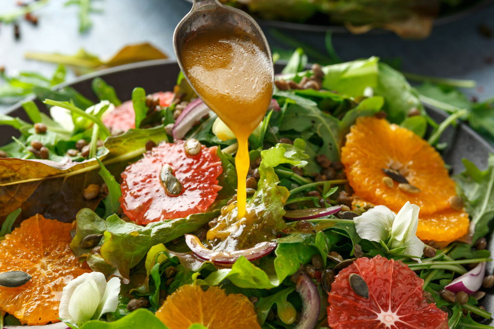 Some people like a little sweetness in their salad, but don’t want to add fruits. The solution is honey or agave, which adds a pinch of natural sweetness to dressings or cheeses that are already infused with honey. Roasting nuts in honey is also delicious. Honey is cut nicely by citrus, so consider making a honey lime or lemon vinaigrette for some zesty joy.