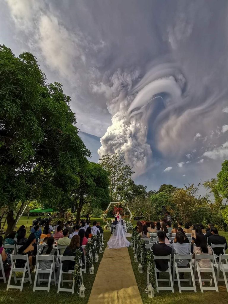 Mereka seharusnya melangsungkan resepsi perkawinan mereka sekitar 10 km dari salah gunung berapi teraktif di Filipina – Gunung Taal. Pada hari perayaan itu, pada sekitar jam 2 siang, saat persiapan terakhir sedang berjalan dan sedang dilakukannya sentuhan akhir, mereka mengetahui ada sesuatu yang tidak benar.