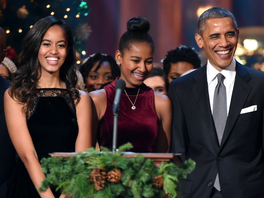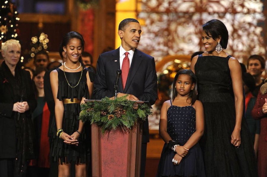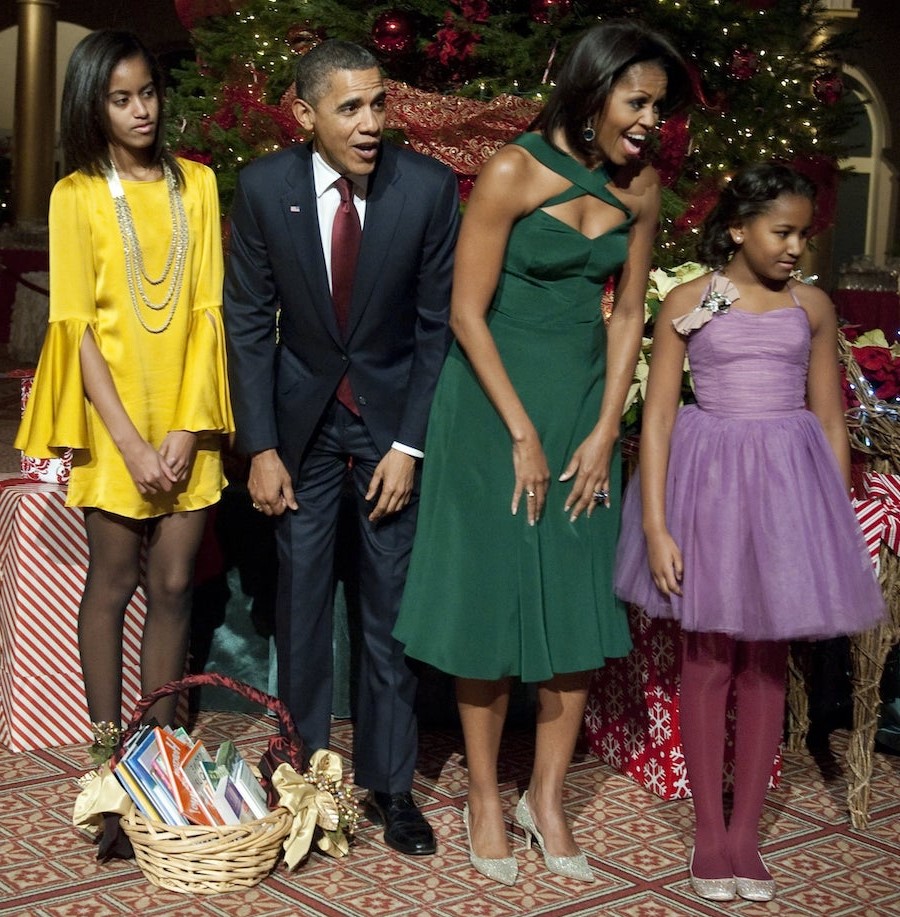 6.Here’s Sasha and Malia all dressed up for Christmas in Washington.
