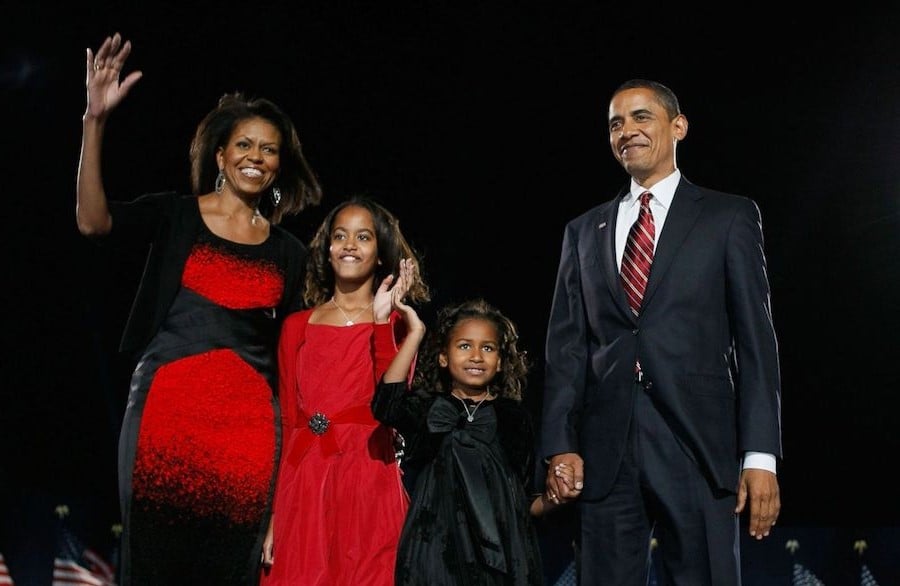 2.Sasha and Malia wearing black and red babydoll dresses for the election night gathering in 2008 and looking stunning.